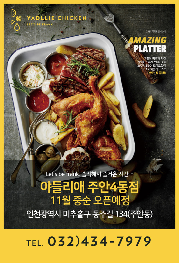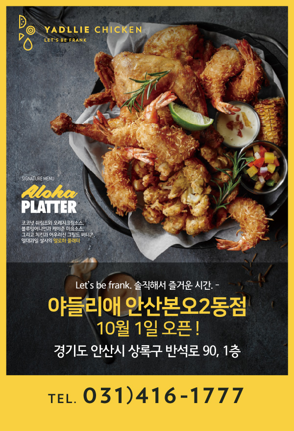 야들리애는 국내산 고품질의 재료 사용을 고집하여 고객에게 건강한 식문화를 제공하고 외식과 문화가 함께 하는 카페형 치킨 프랜차이즈 브랜드입니다.